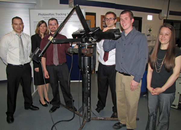 The six students presented a capstone project Friday, May 10, on campus, a day before graduation. Their project, the Photovoltaic Tracker System, was explained via Power Point in Fryklund Hall followed by a demonstration with about a dozen faculty looking on.