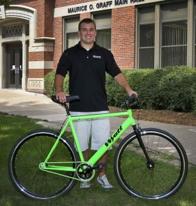 May graduate Wyatt Hrudka earned a degree in Information Systems. He is founder of Wyatt Bicycle Co., pictured with his 2013 model single-speed bike.