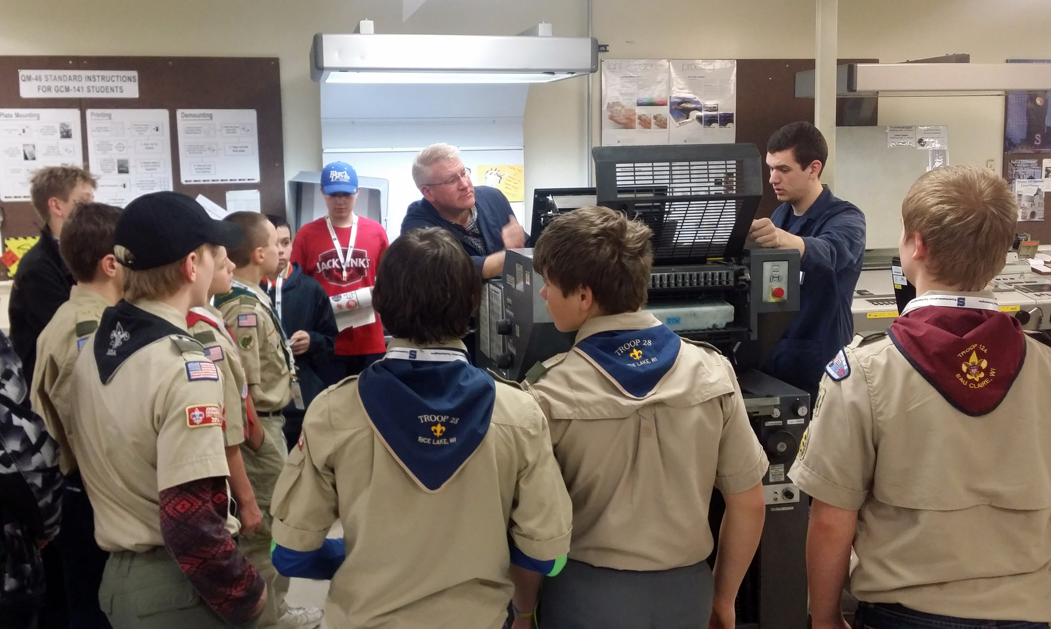 Vern Caturia, Council Advancement Committee chair for the Chippewa Valley Council BSA, was happy to see scouts learn methods of printing for publication and, at the same time, learn from young adults who aren’t much older than the young men themselves. The scouts ranged in age from 11 to 17.