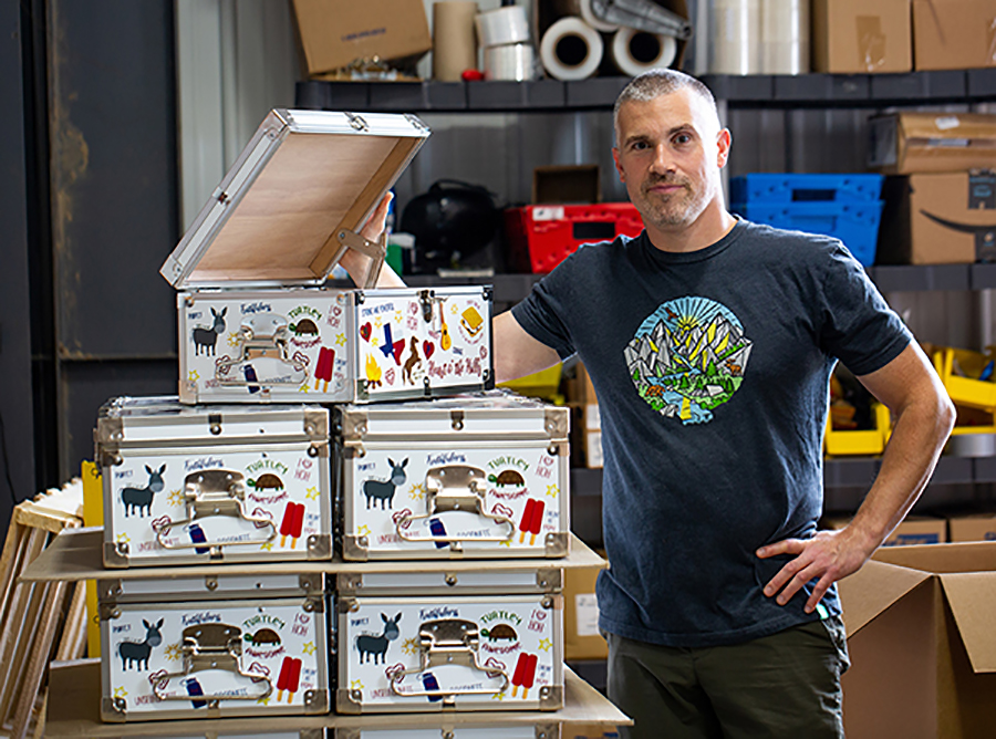 Mark Sieglaff, C&N vice president, inspects an order of custom minitrunks for Heart O’ the Hills Camp in Hunt, Texas.