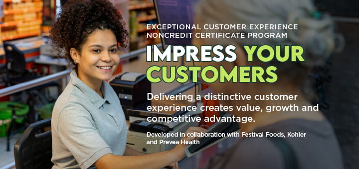 UW-Green Bay now offers a new certificate program designed to deliver a distinctive customer experience that not only impresses customers but also creates value, growth and competitive advantage. Local experts from Festival Foods, Kohler and Prevea Health will share insights gained from thousands of customer interactions and connections over five sessions. Registration is open.