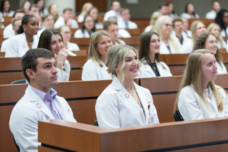 Photo of School of Pharmacy students at their pinning ceremony in May. The ceremony marks their transition from didactic course work to full-time experiential learning. UW–Madison