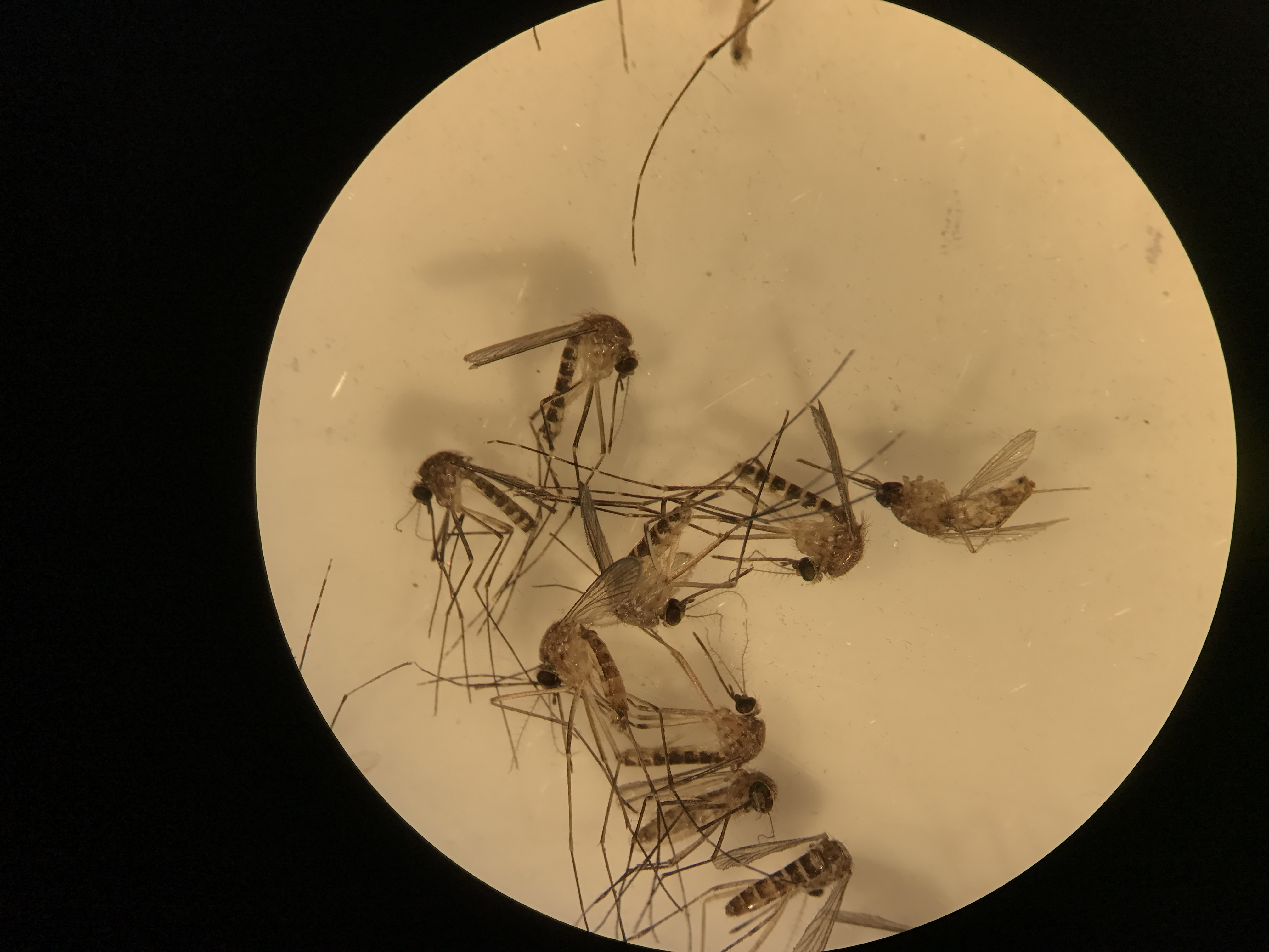 Photo of mosquitoes seen through a microscope from the Clarke mobile lab. Identifying mosquito species helps public health officials understand the potential threat of mosquito-borne diseases.
