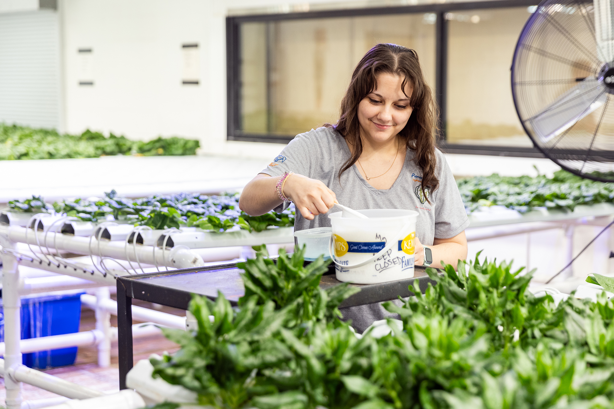 “We’re producing 100 pounds of fresh lettuce every week, and we’re doing it sustainably,” Crow said. “This efficiency is possible thanks to a unique, low-energy setup that maximizes the use of the existing building space. The building was already in use, but the space for the lab was idle. Since it was already being heated, it made sense to utilize the existing space.”