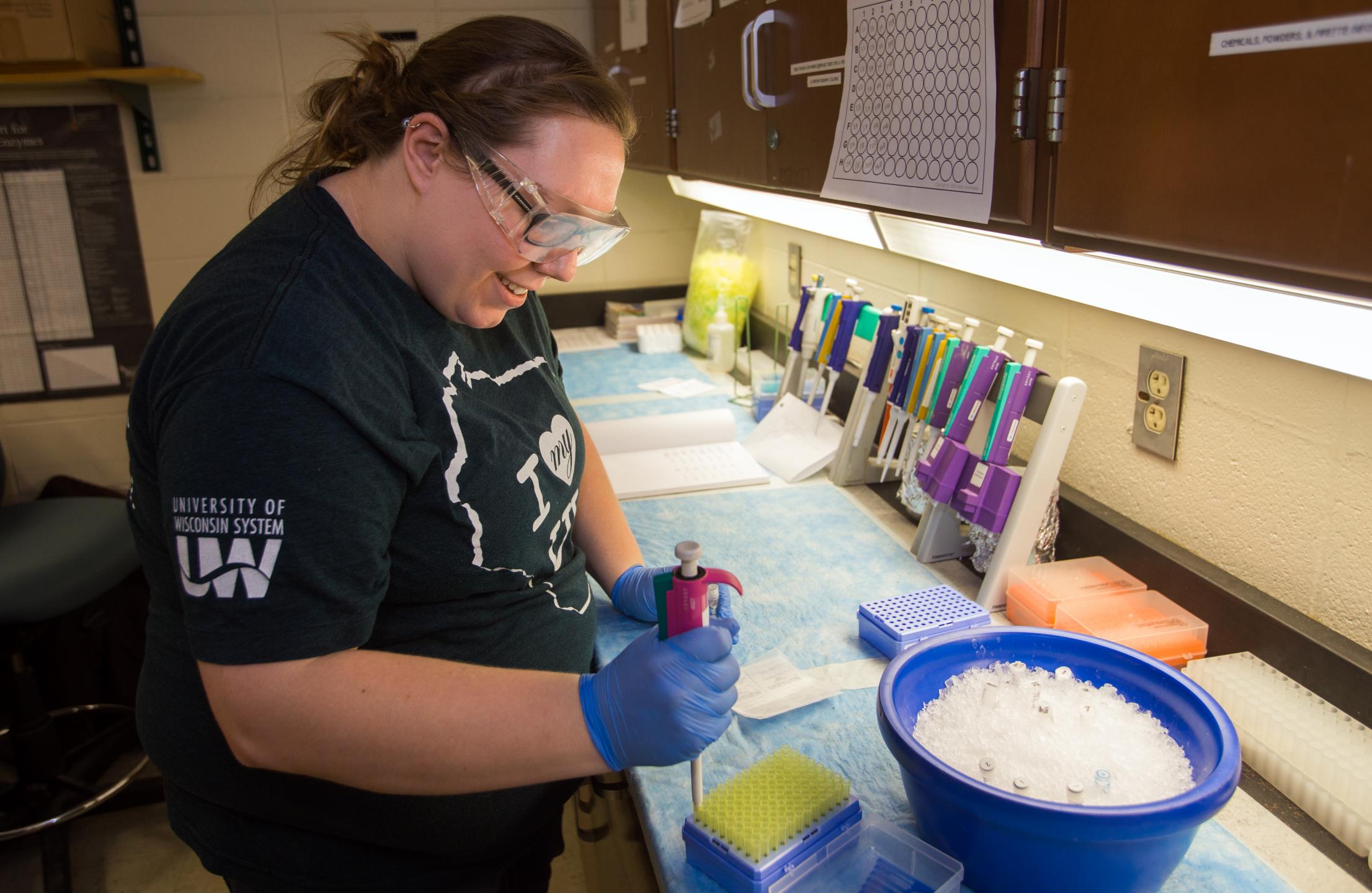 PLATTEVILLE, Wis – A group of University of Wisconsin-Platteville students are collaborating on a research project that examines Staphylococcal enterotoxin B, a toxin responsible for staphylococcal food poisoning in humans. Erin Geddes, senior chemistry criminalistics major from Osceola, Wisconsin, will present the research on Wednesday, April 13, at the Posters in the Rotunda event at the capitol in Madison, Wisconsin.