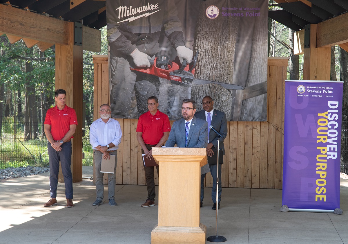 “We are excited to partner with Milwaukee Tool, a world-class leader in sustainable tool technology,” Chancellor Thomas Gibson said at an event announcing the endowment today (Aug. 24) at Schmeeckle Reserve. “Their generous support is a tremendous benefit for our students.”
