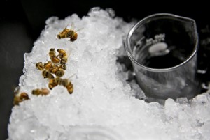 In a lab at UW-Stout’s Jarvis Hall, Burritt, students and lab assistants have been withdrawing tiny amounts of hemolymph — two-millionths of a liter — from chilled bees.