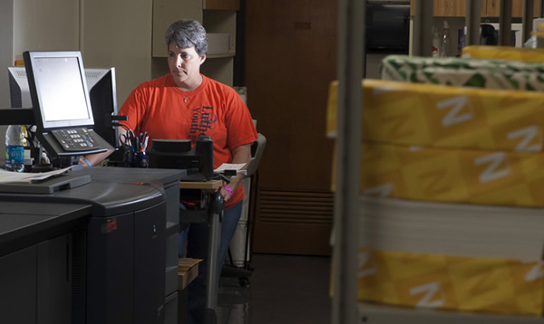 “UW-Stout’s Printing Services have always struggled financially,” said Kim Schulte-Shoberg, UW-Stout assistant vice chancellor who oversees printing, “because we have a much smaller pool of customers, and yet the same level of capital investment and staffing is needed to accommodate the printing demands of the campus.”