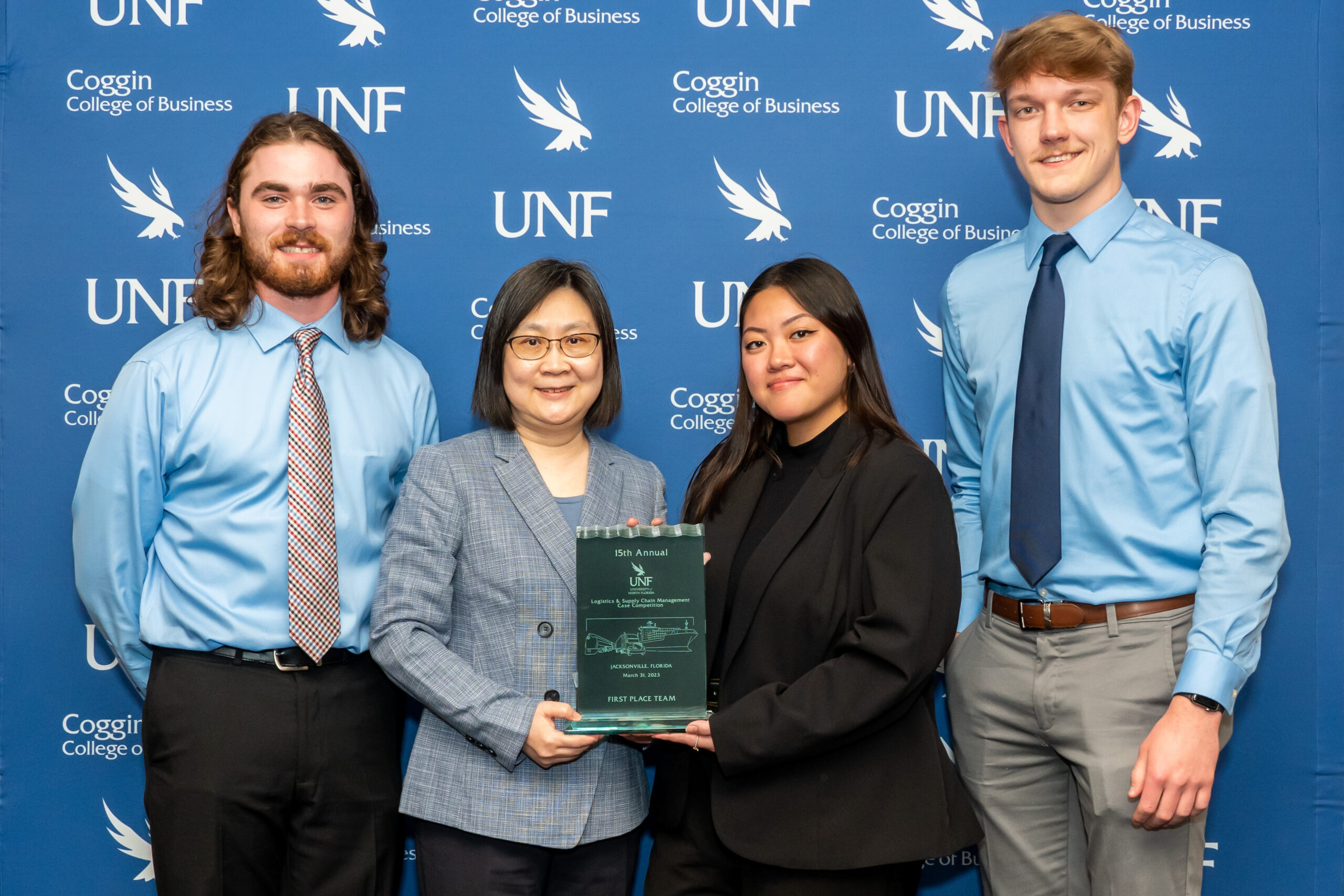 A team of University of Wisconsin-Superior transportation and logistics management and supply chain management students earned first place in the annual UNF Logistics & Supply Chain Management Case Competition hosted by the University of North Florida in Jacksonville, Florida, on March 31.