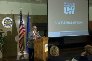 UW System President Kevin P. Reilly emphasized the central, key role of the UW faculty in the Flexible Option. Reilly said, “Our UW professors are the guarantors of quality in our traditional classroom-based programs, and ‘traditional’ online programs, and they will play the same role with this competency-based model.”