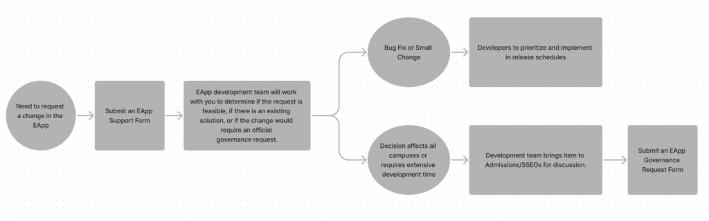 For general questions, issues, or minor changes, please submit an EApp Support request first. Depending on the scope of your change, we may recommend that the request go through governance instead.